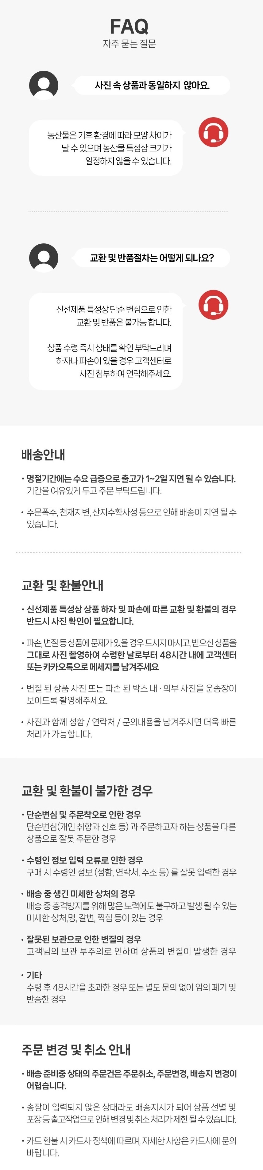 | 교환 및 반품 안내 |
