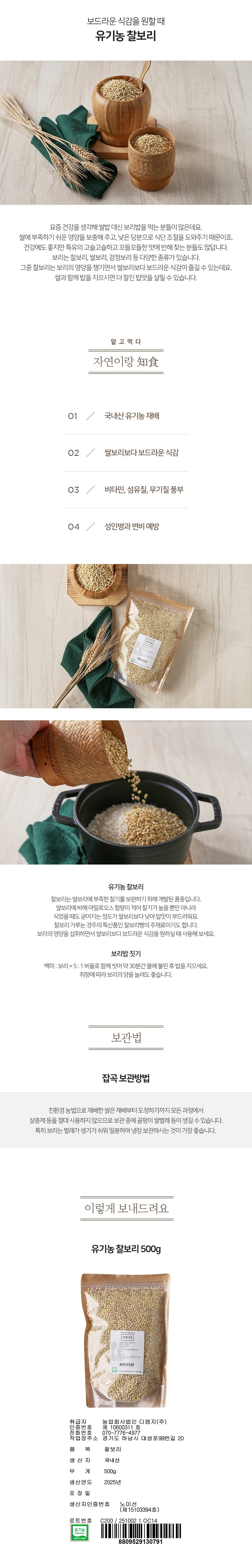 유기농 찰보리 500g