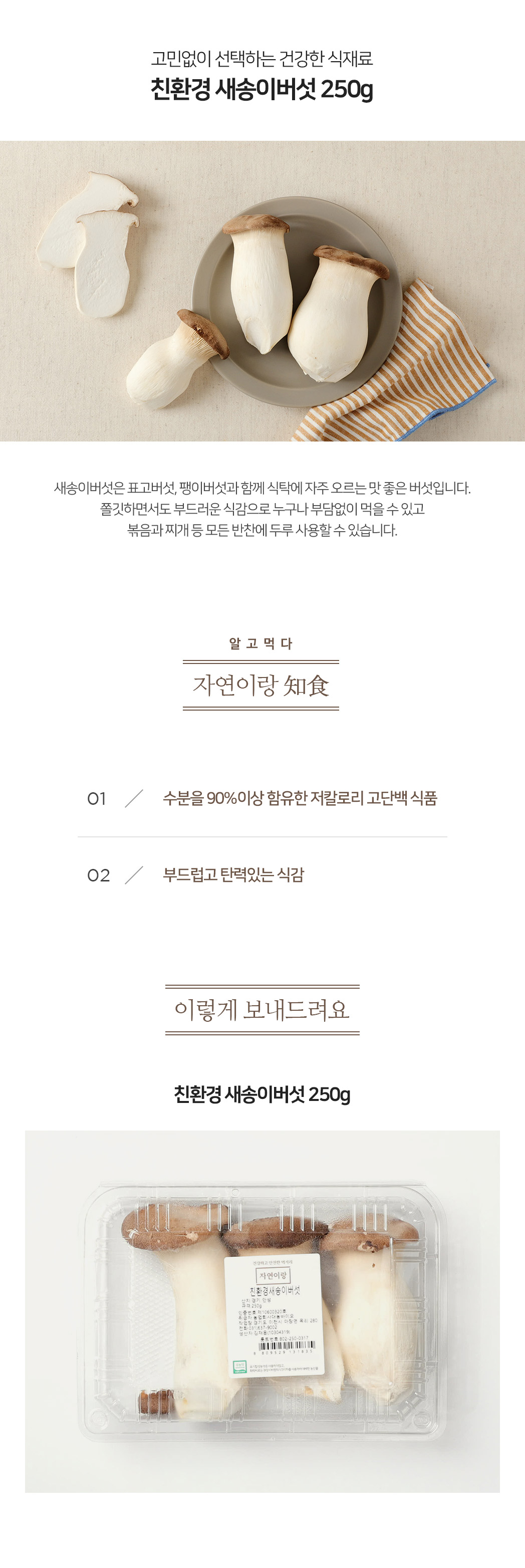 친환경 새송이버섯 250g