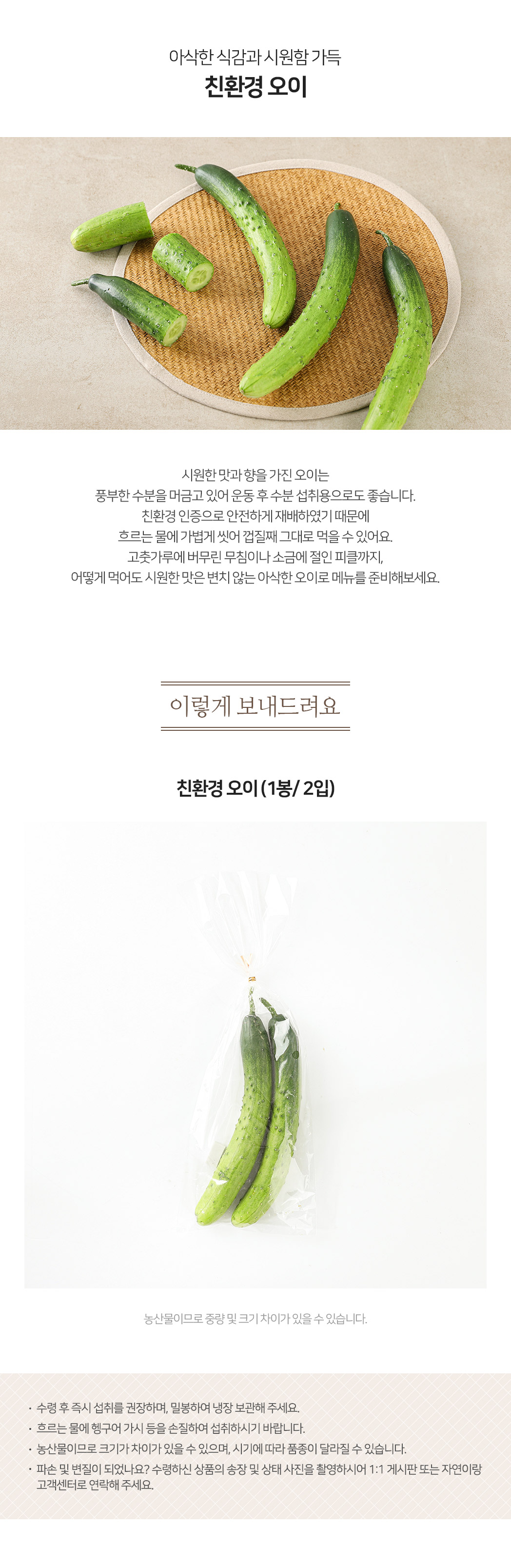 무농약 또는 유기농으로 재배한 친환경 오이| 판매가격 | 3,700원 3,990원 |