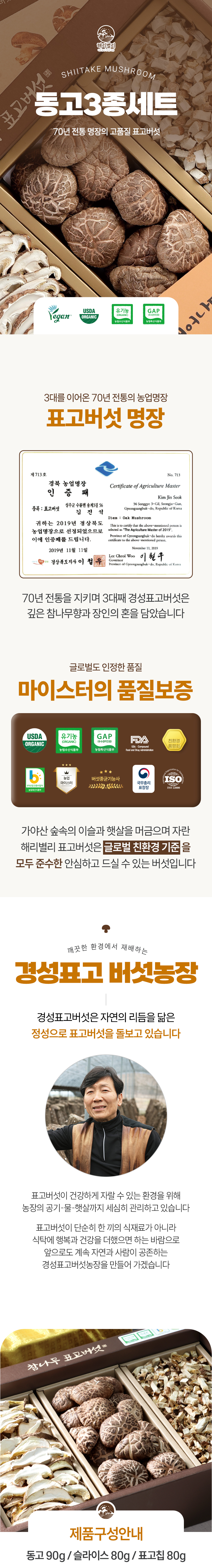 판매단위 3종(동고 90g,표고 슬라이스80g,표고칩 80g)