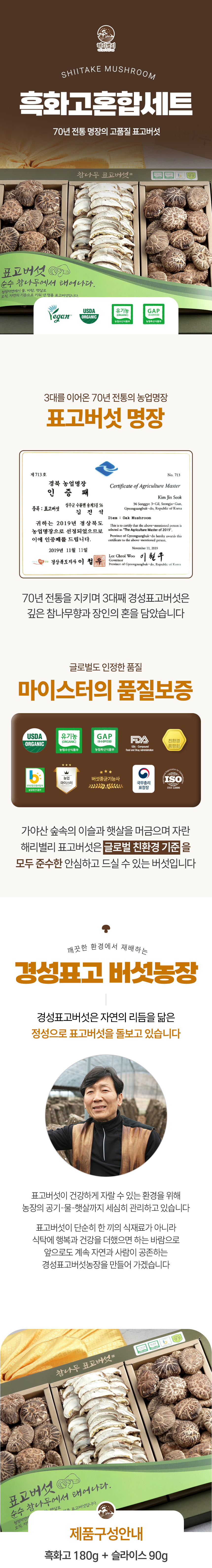 | 판매단위 | 2종(흑화고 180g,표고슬라이스 90g) |