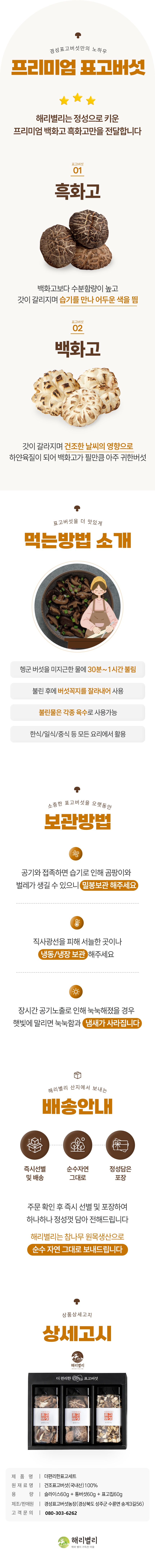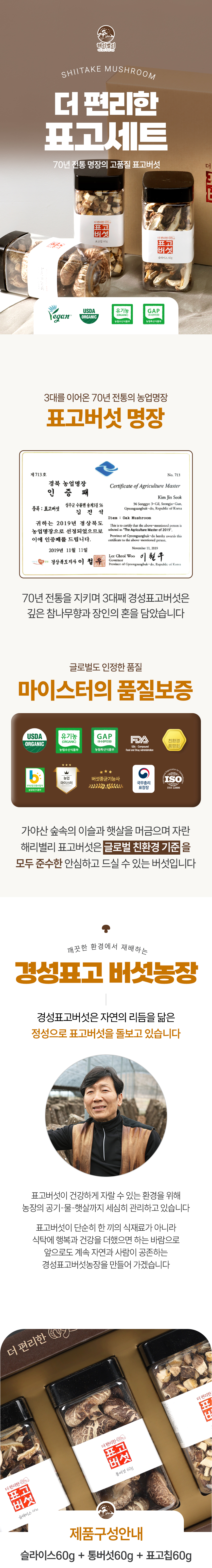 | 판매단위 | 3종(슬라이스60g,통버섯60g,표고칩60g) |