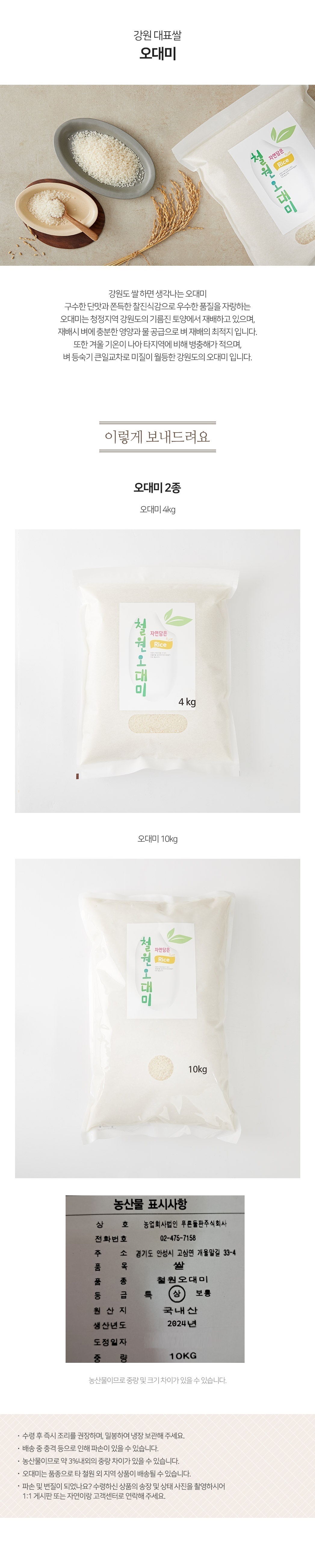 · 주의사항 - 일요일, 법정공휴일은 배송(도착)하지 않습니다. (명절 및 특수시즌 제외) - 배송지 정보와 받으시는 분의 장소 및 연락처가 불분명할 경우에는 배송이 지연될 수 있으며, 그로 인한 상품 변질에 대해서는 자연이랑이 책임지지 않습니다. |