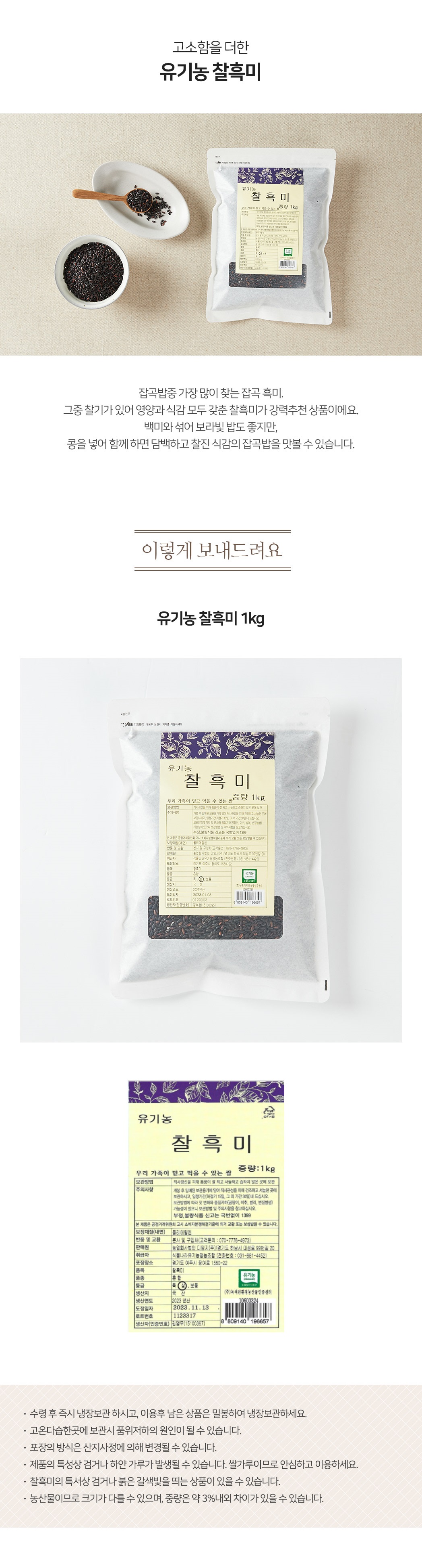 유기농 찰흑미 1kg