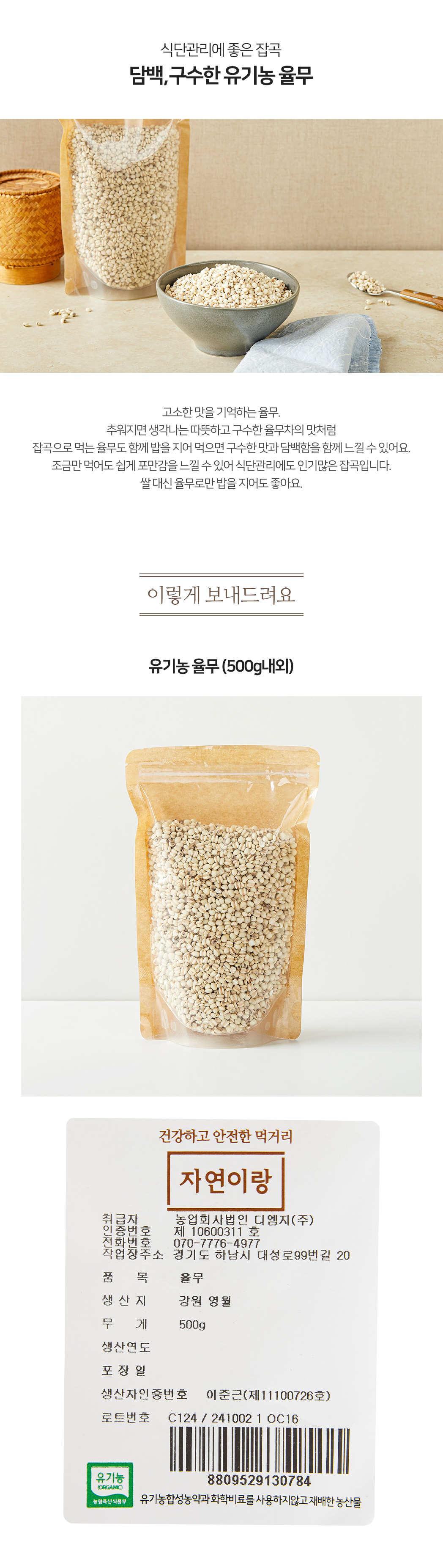 · 주의사항 - 일요일, 법정공휴일은 배송(도착)하지 않습니다. (명절 및 특수시즌 제외) - 배송지 정보와 받으시는 분의 장소 및 연락처가 불분명할 경우에는 배송이 지연될 수 있으며, 그로 인한 상품 변질에 대해서는 자연이랑이 책임지지 않습니다. |