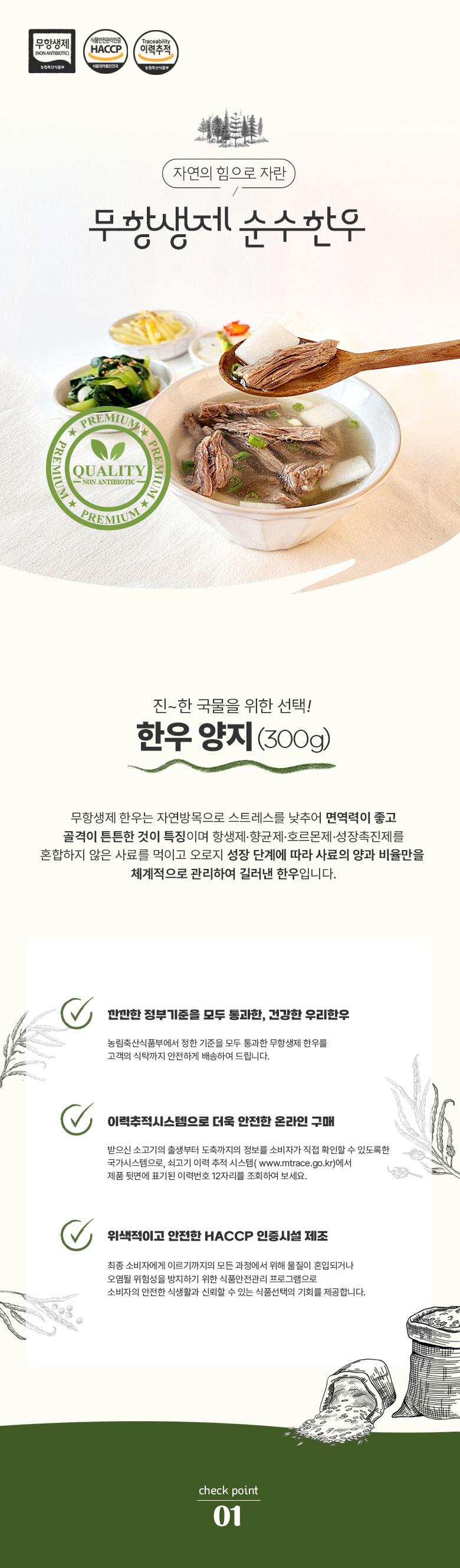 품목또는명칭 [농협안심한우] 무항생제 1등급 한우 양지 300g
