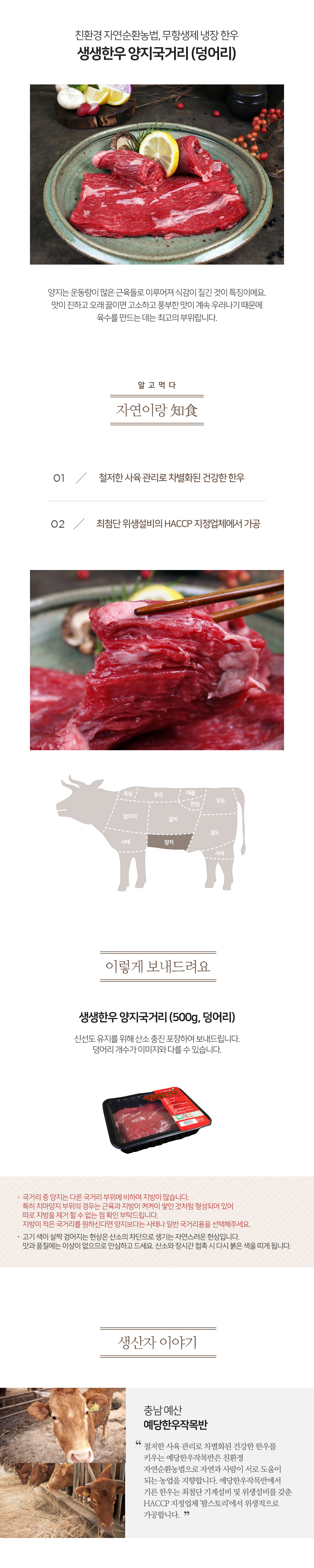 품목또는명칭 [생생한우] 무항생제 1등급 한우 양지국거리(덩어리) 500g