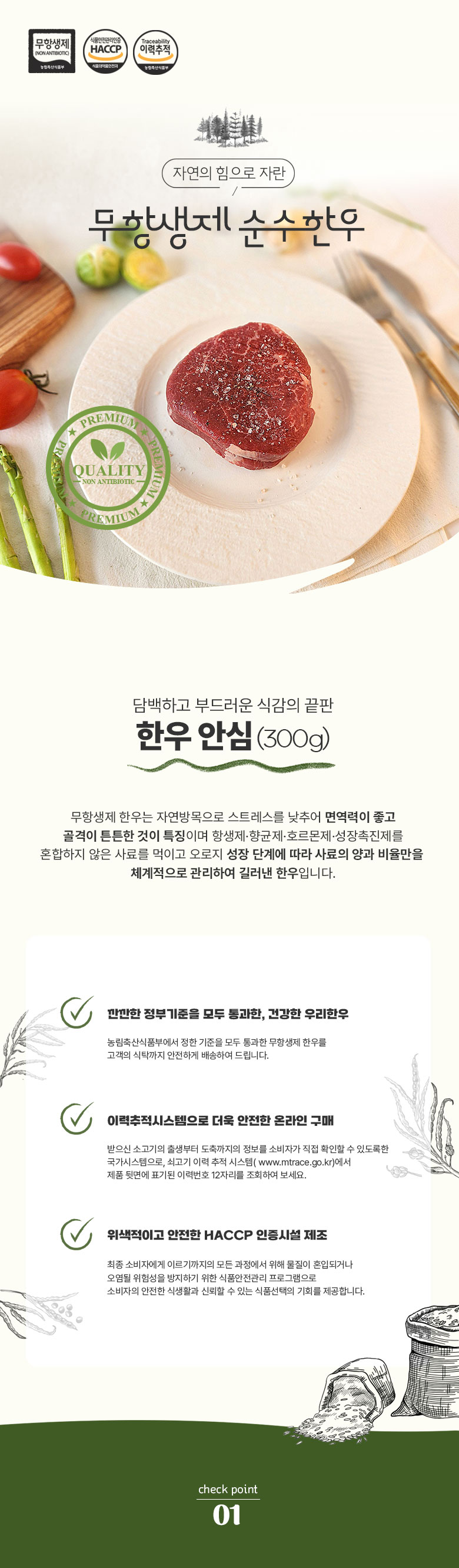 [농협안심한우] 무항생제 1등급 한우 안심 300g