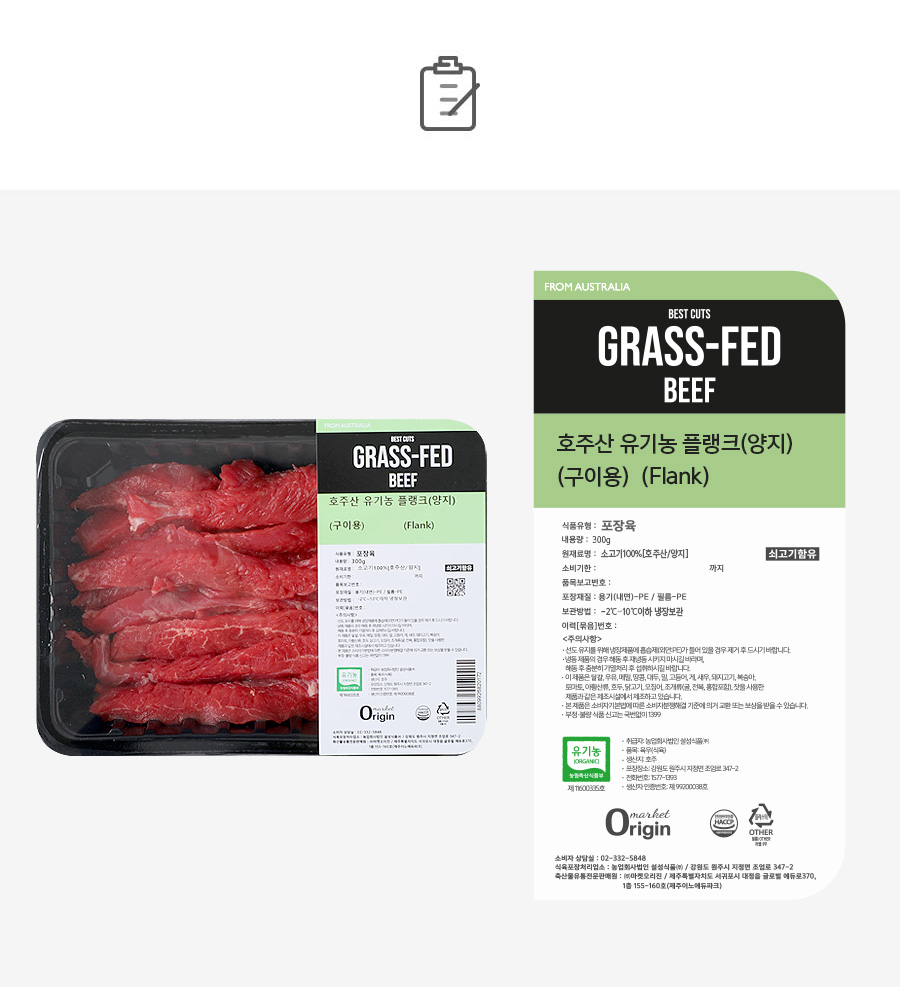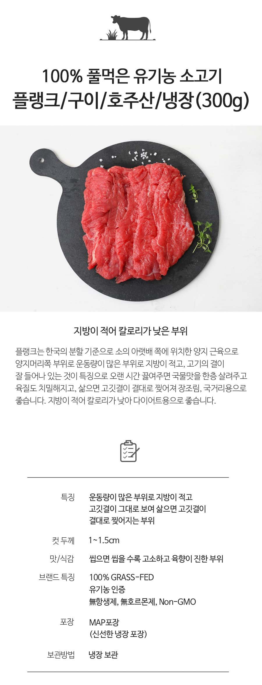 [호주목초우] 유기농 플랭크 구이용 300g