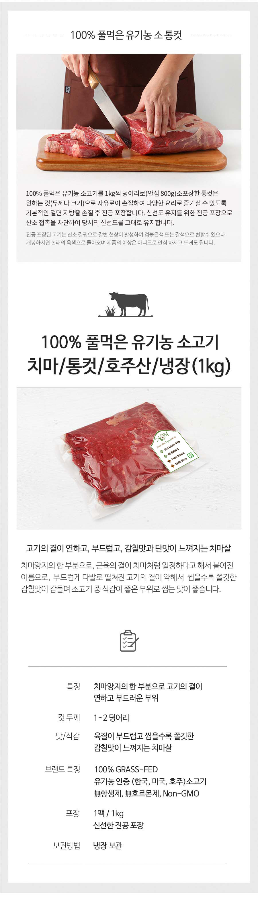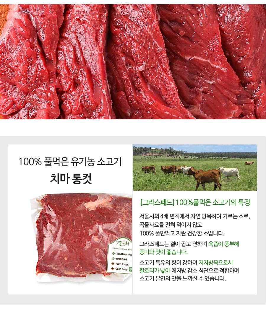 [호주목초우] 유기농 치마살 1kg(리테일컷/통컷)