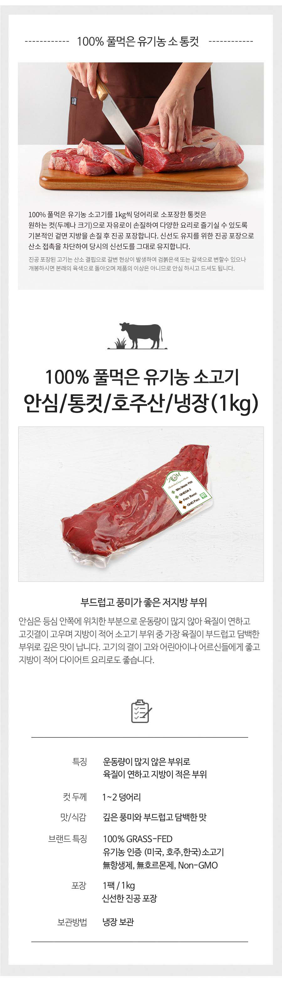 [호주목초우] 유기농 안심 1kg(리테일컷/통컷)