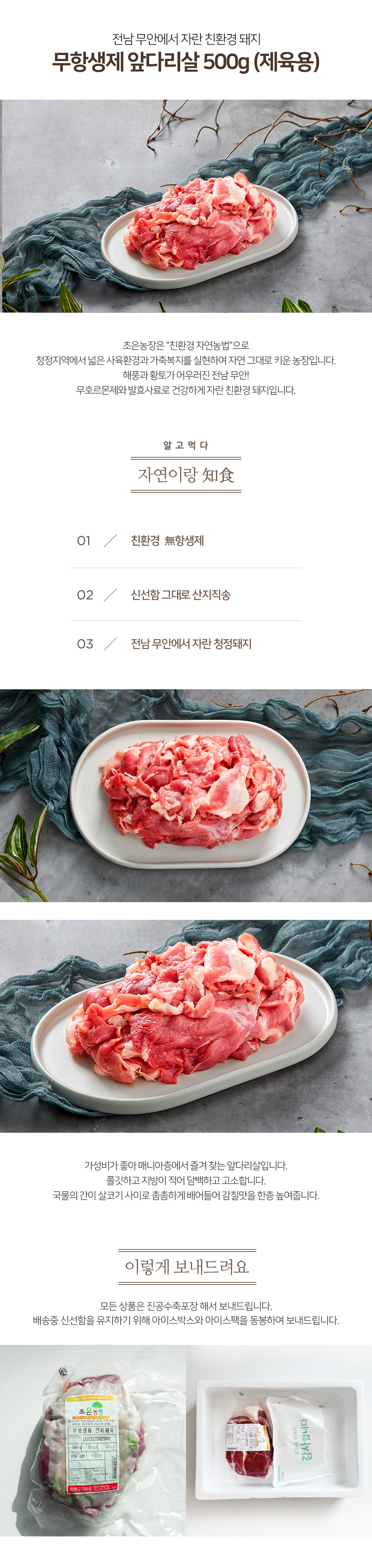전남 무안 무항생제 앞다리살 500g(제육용)