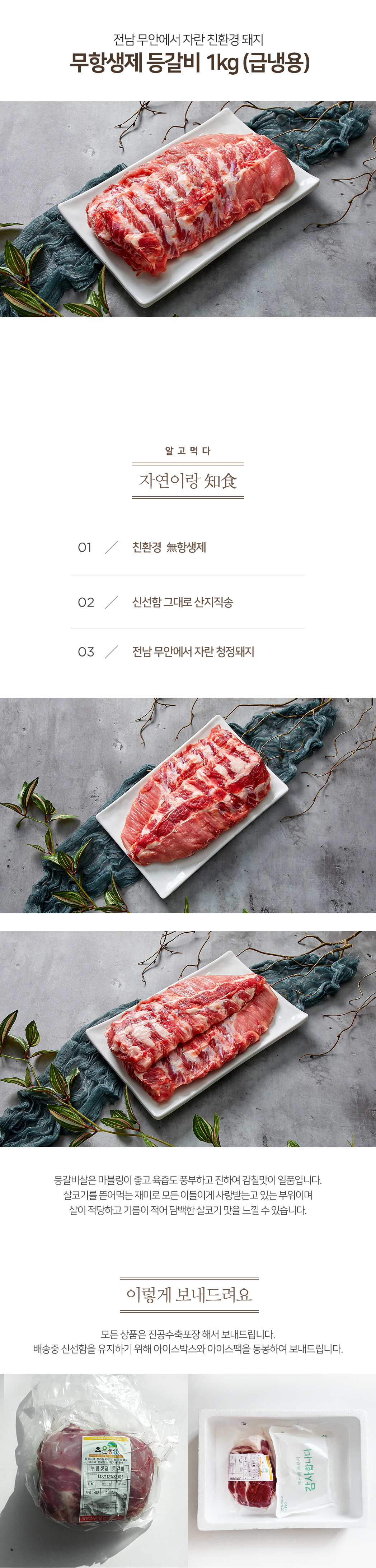 품목또는명칭 전남 무안 무항생제 등갈비 1kg(급냉)