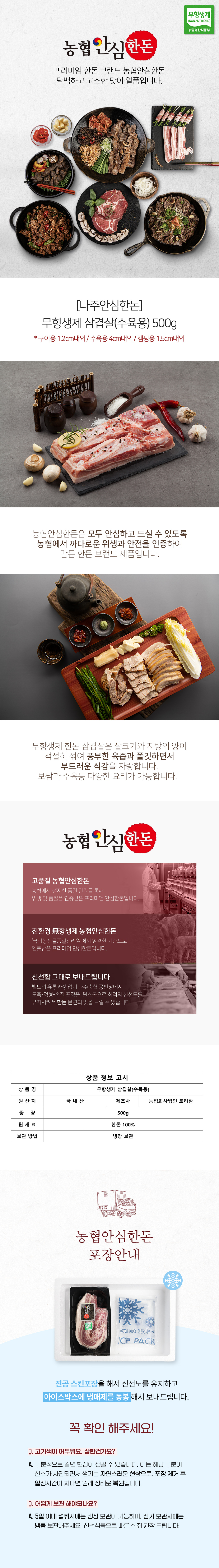 [나주안심한돈] 무항생제 삼겹살(수육용)500g