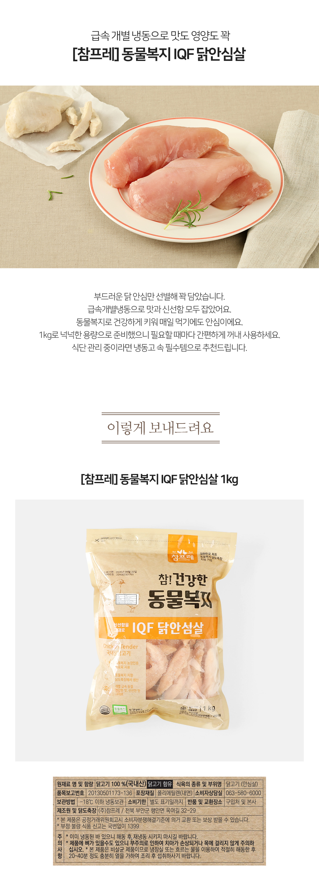 [참프레] 동물복지 IQF 닭 안심살 1kg(냉동)