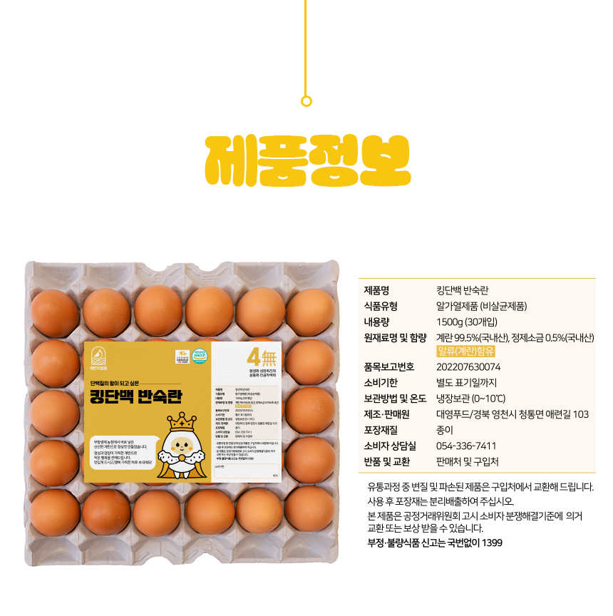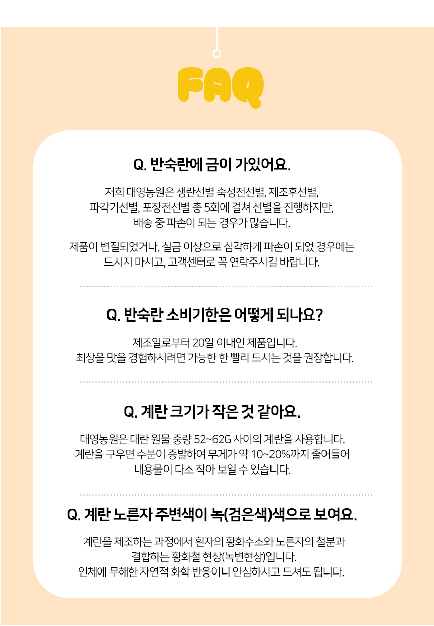 ![]() ※ 반숙란은 생란을 물에 삶는 과정에서 난각번호가 찍힌 수용성잉크가 지워질 수 있습니다. ![]() ![]()