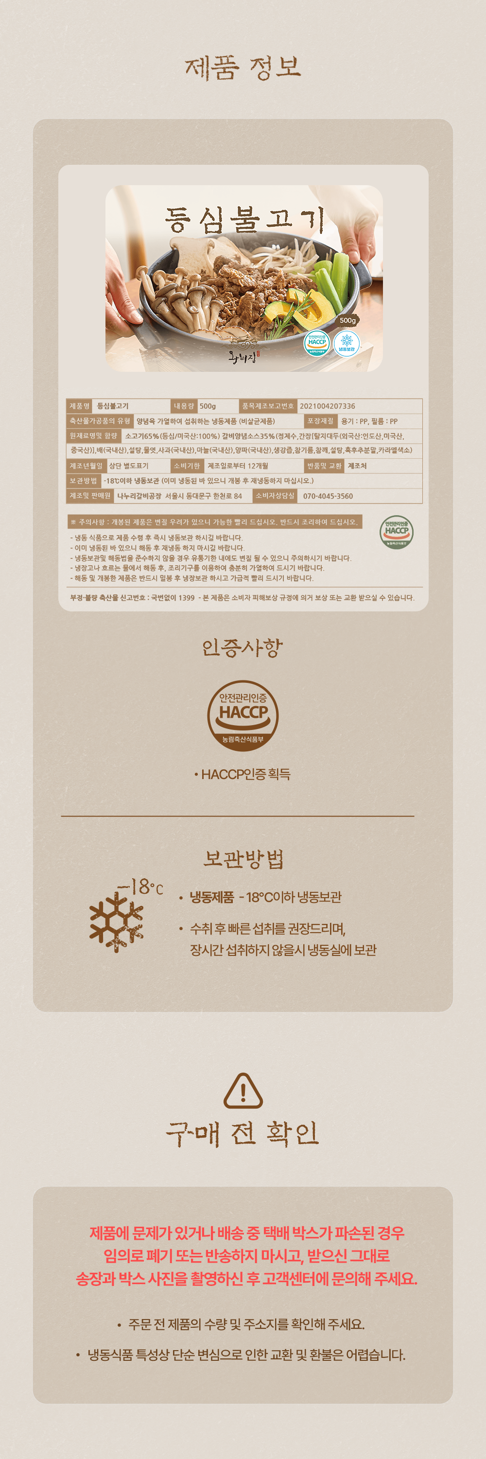 · 주의사항 - 일요일, 법정공휴일은 배송(도착)하지 않습니다. (명절 및 특수시즌 제외) - 배송지 정보와 받으시는 분의 장소 및 연락처가 불분명할 경우에는 배송이 지연될 수 있으며, 그로 인한 상품 변질에 대해서는 자연이랑이 책임지지 않습니다. |