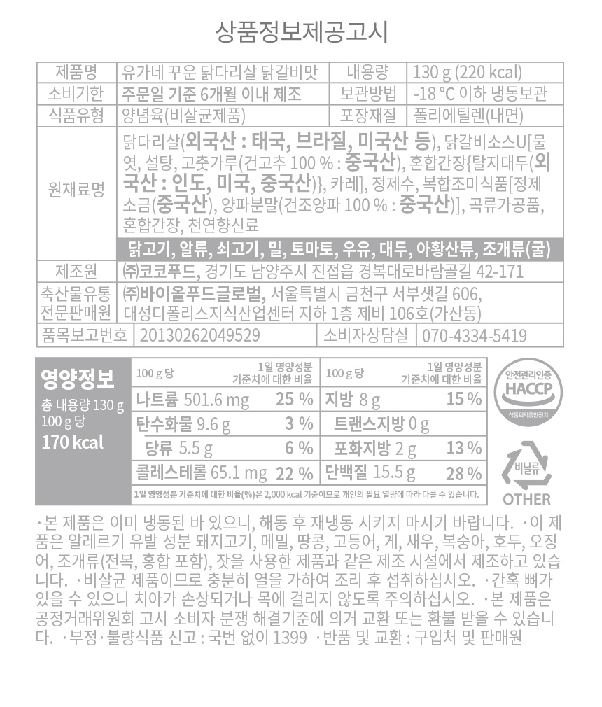 두 번 구운 겉바속촉 꾸운 닭다리살| 판매가격 | 8,300원 9,500원 |