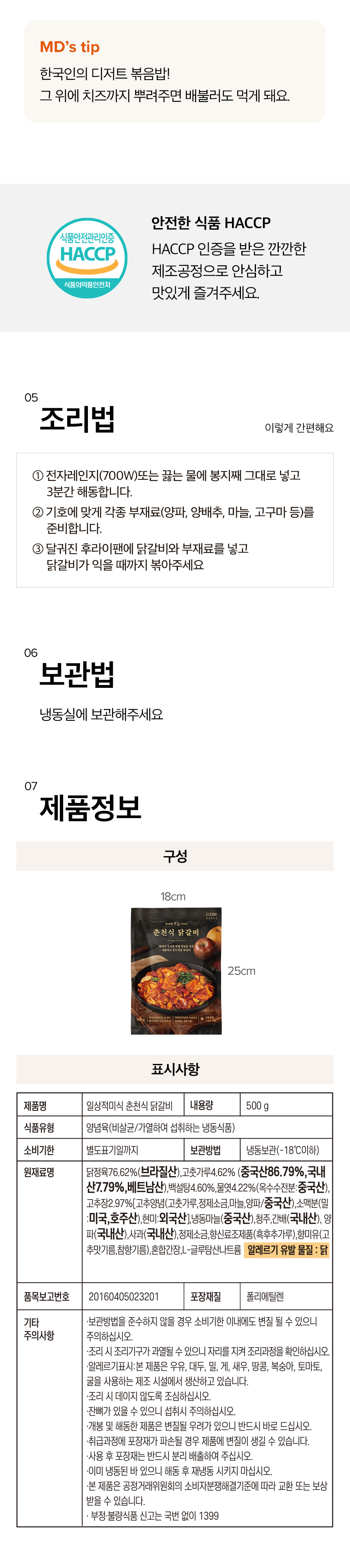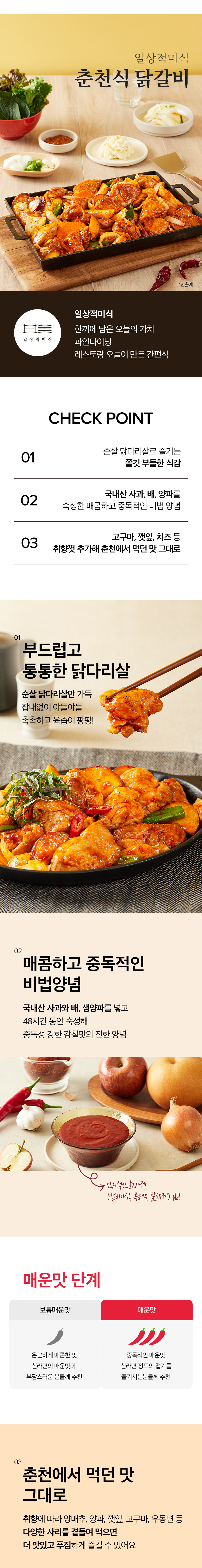 닭다리살에 48시간 숙성 양념을 입힌 부드러운 닭갈비| 판매가격 | 8,500원 9,900원 |