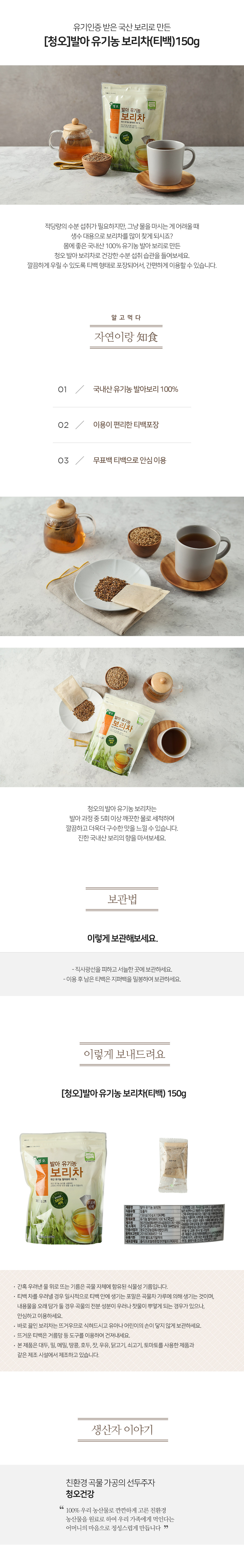 [청오] 발아 유기농 보리(티백) 150g