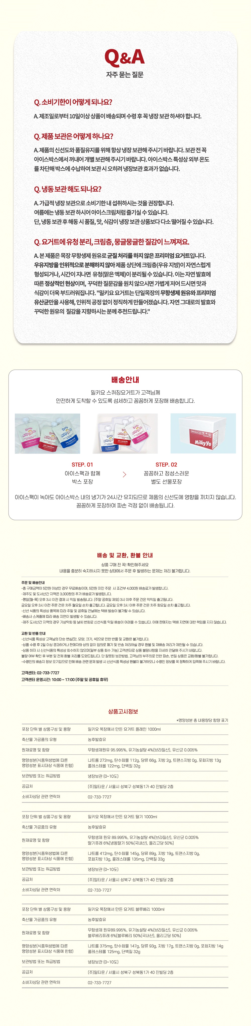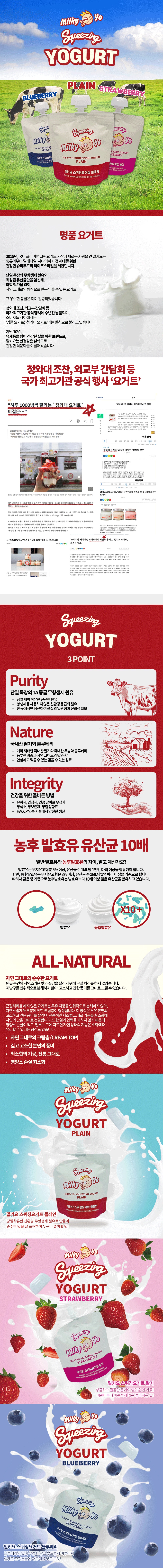 밀키요 [1등급 친환경 무항생제 원유] 스퀴징 요거트 플레인2+딸기2+블루베리2