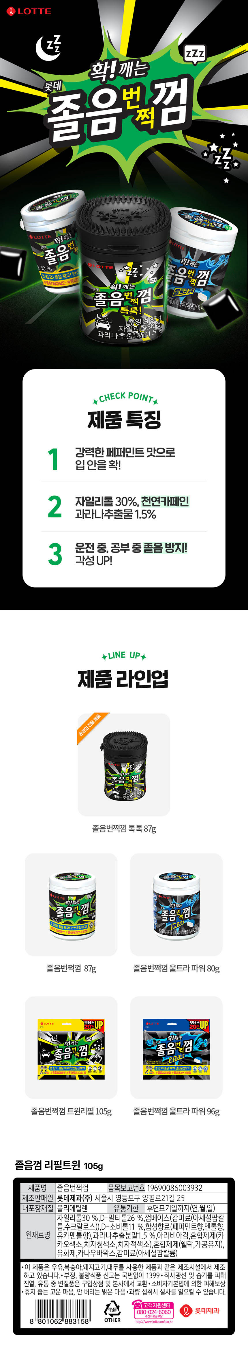 [롯데] 졸음번쩍껌 트윈리필 105g