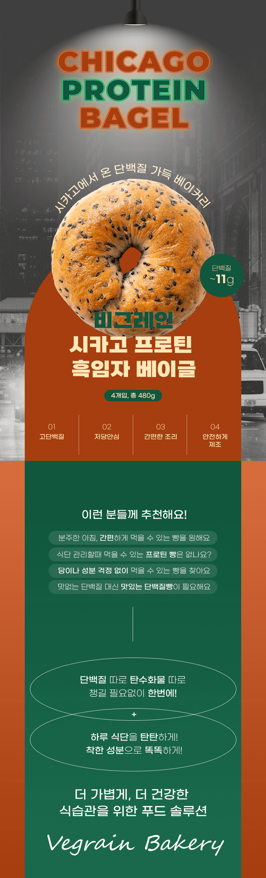 [비그레인] 시카고 프로틴 흑임자 베이글