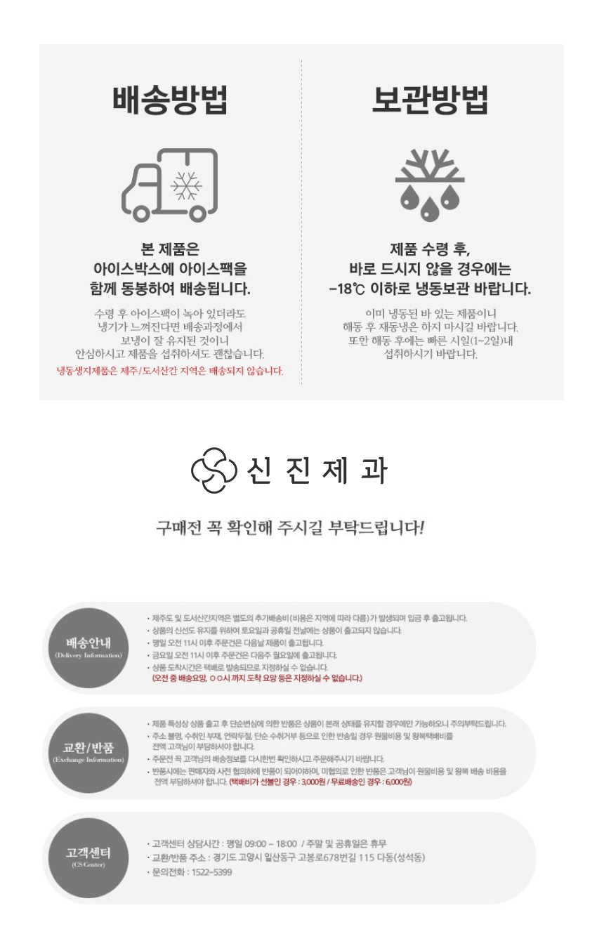 | 주문마감 | 일~금 16시 주문까지 당일 출고 |