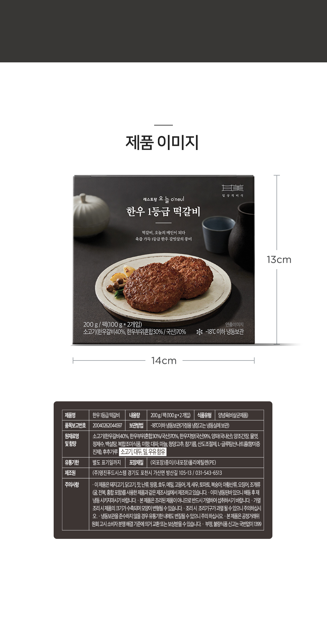 | 판매단위 | 한우1등급떡갈비(2입) 2개 |