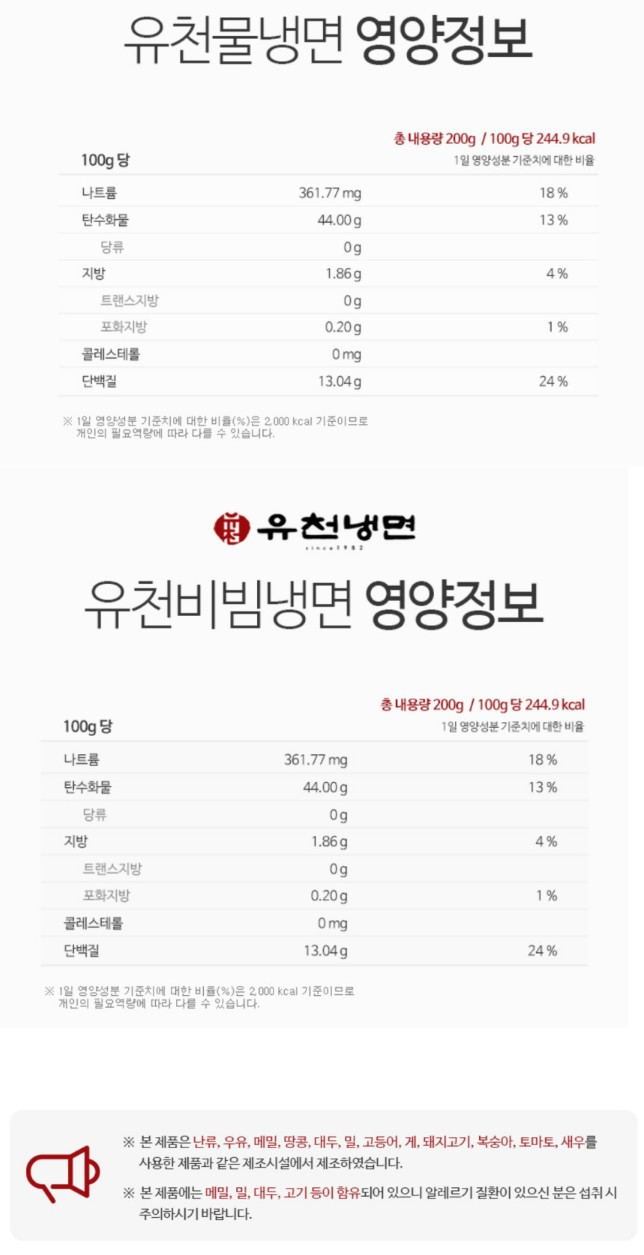 | 판매단위 | 비빔냉면2+양념2+육수1+무김치1+기름장2 | |