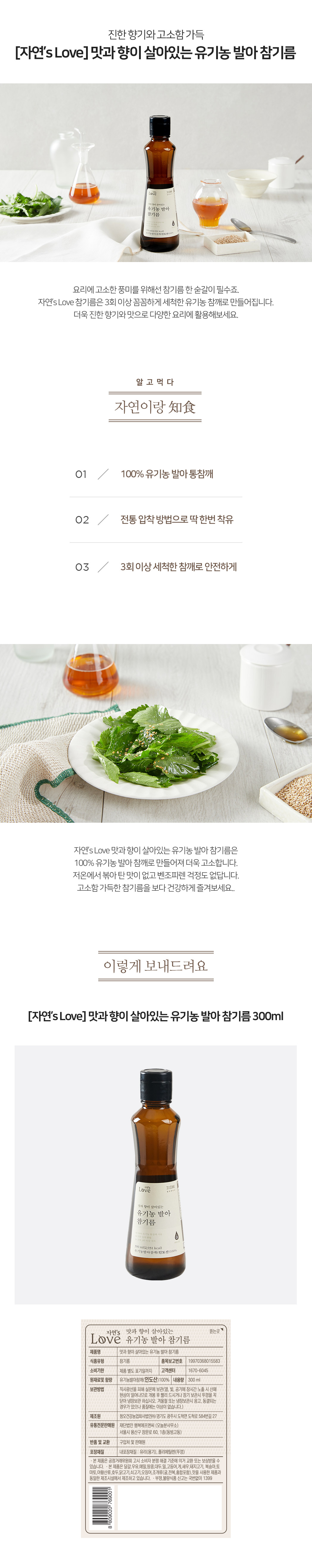 [자연’s Love] 맛과 향이 진한 유기농 발아 참기름
