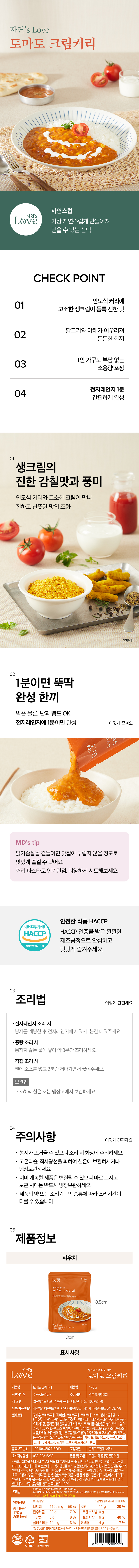 [자연’s Love] 토마토크림커리 170g*3팩