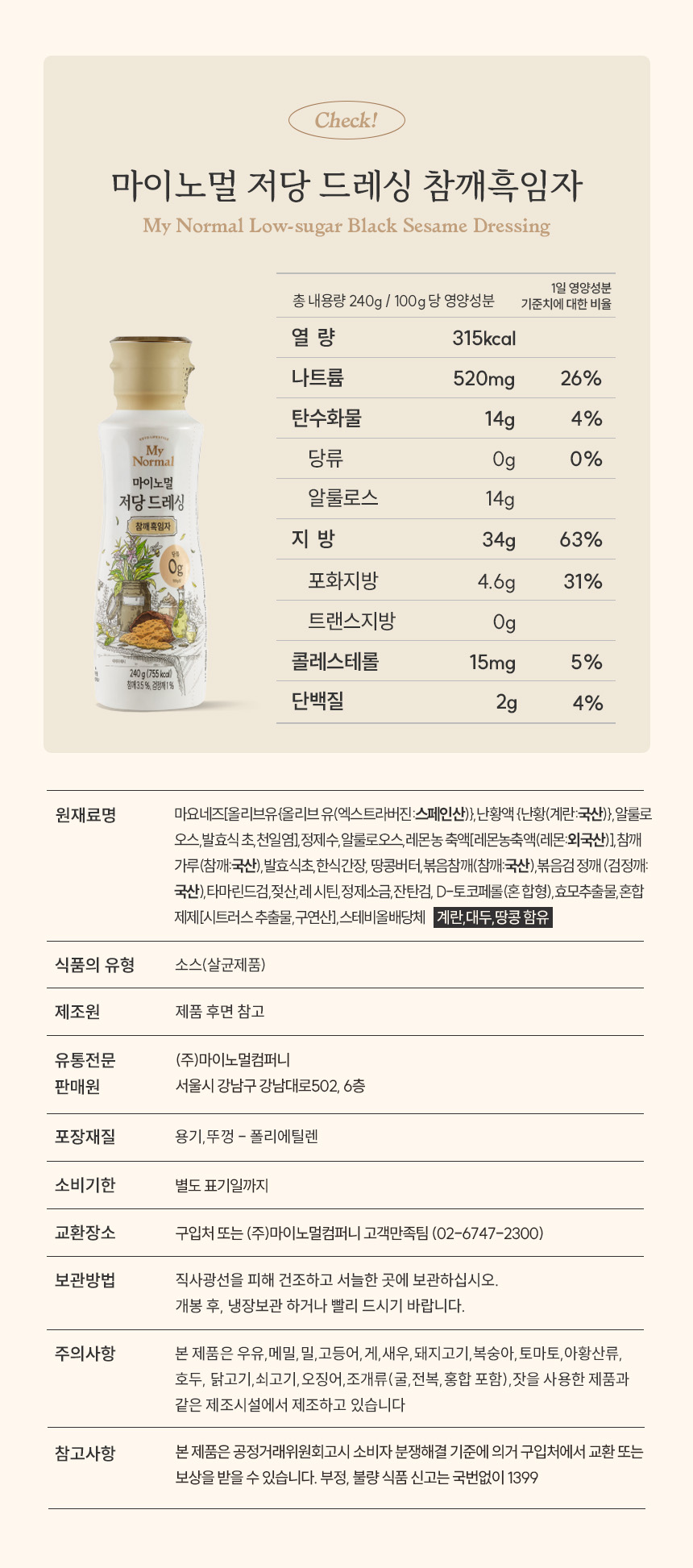 [마이노멀] 저당드레싱 참깨흑임자 240g