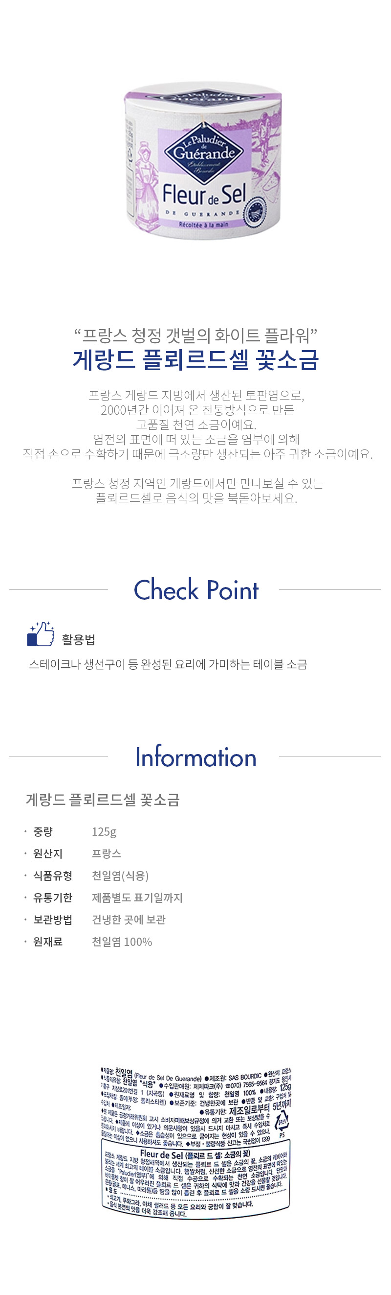 소금의 캐비어라 불리는 프랑스 고급 꽃소금| 판매가격 | 11,500원 12,500원 |