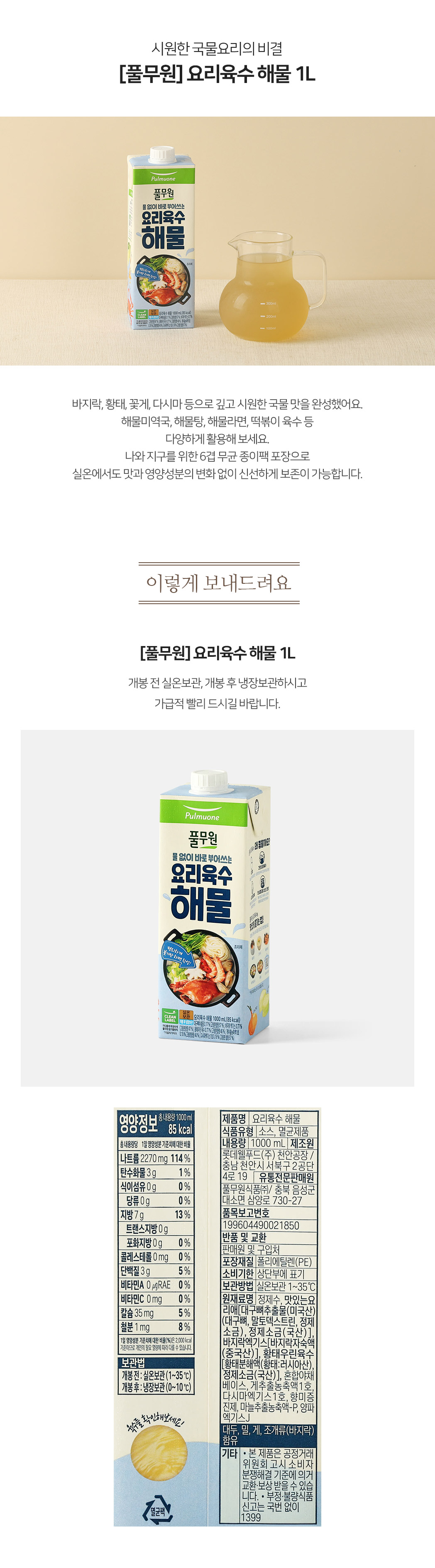 [풀무원] 요리육수 해물 1L