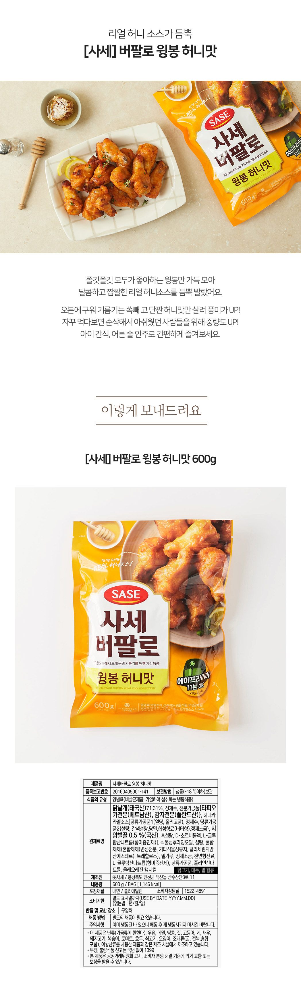 [사세] 버팔로 윙봉 허니맛 600g