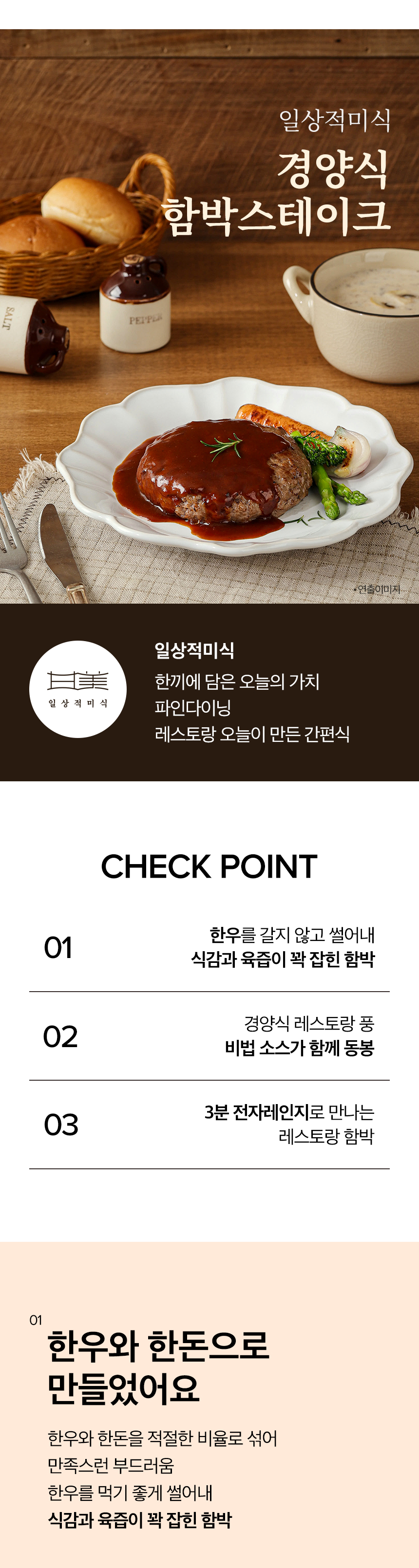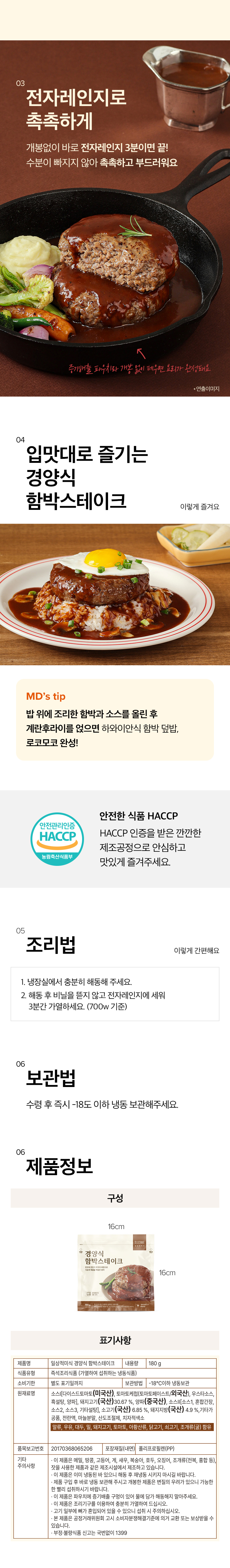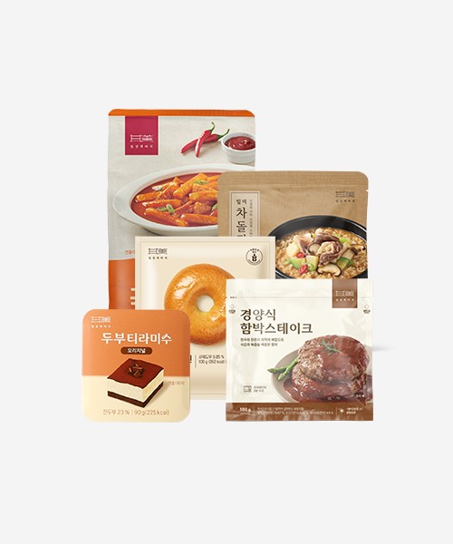 | 판매단위 | 함박스테이크, 매콤국물떡볶이, 두부티라미수 오리지널, 차돌된장밥, 베이글 플레인 각 1개 |