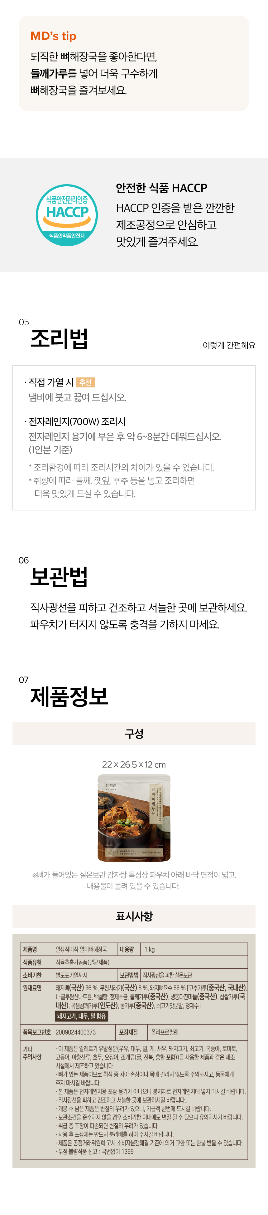 제품명 [일상적미식] 일미뼈해장국 1kg