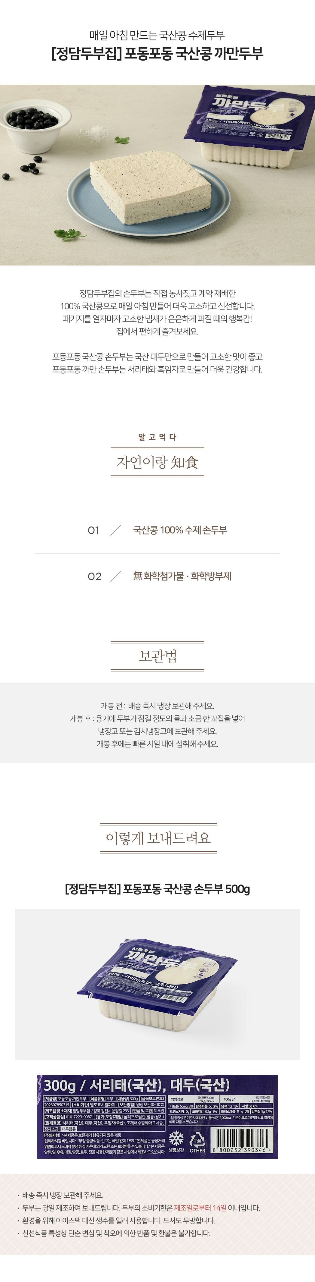흑임자와 서리태로 진하게 맛을 낸 까만손두부| 판매가격 | 3,500원 4,500원 |