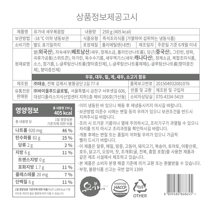 제품명 [유가네] 새우 볶음밥 250g x 3팩
