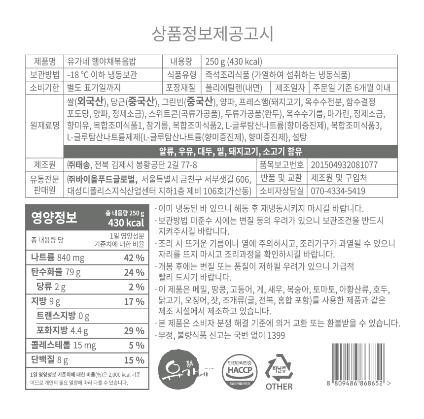 제품명 [유가네] 햄야채 볶음밥 250g x 3팩