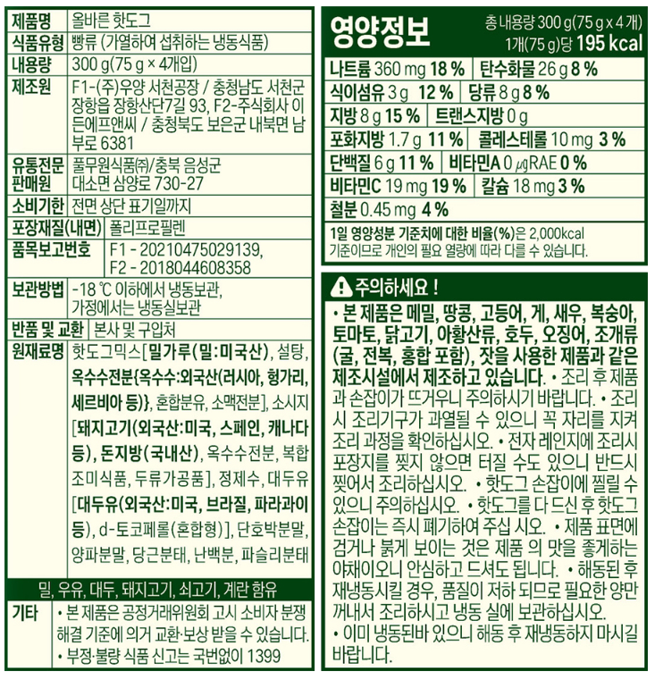 [풀무원] 올바른핫도그 1봉(4개입)