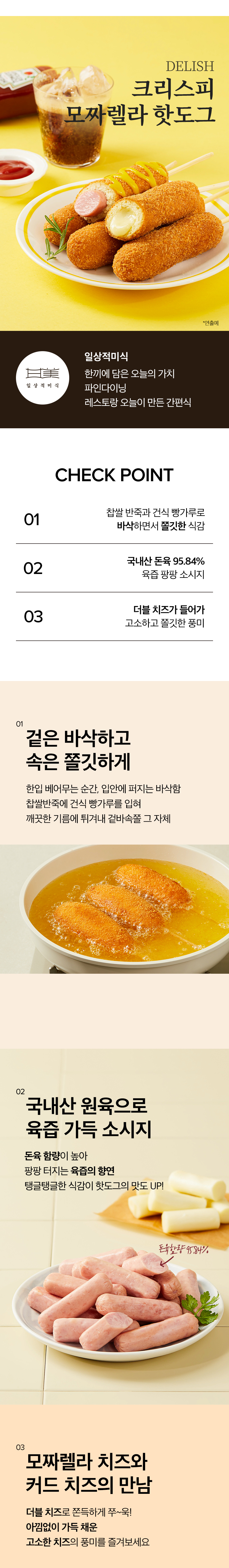 바삭 쫀득한 일미 모짜핫도그| 판매가격 | 7,500원 8,900원 |