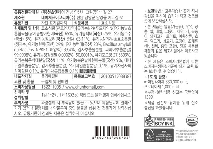 [천호엔케어] 유기농 효소 비움채움 3g * 30포