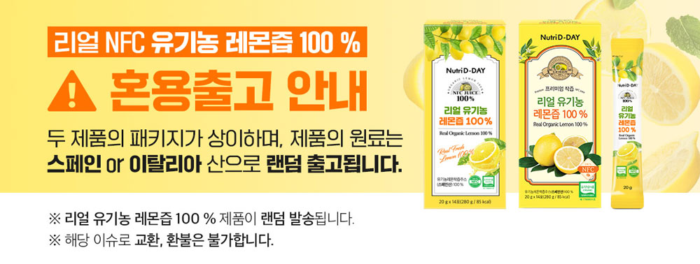[뉴트리디데이] 리얼 NFC 유기농 레몬즙 100% x 14포 x 6박스 (총 84개입)