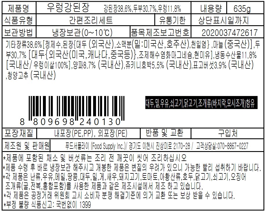 *유통기한은 생산일로부터 5일입니다. ![]() ![]() ![]() 변경된 상품 고시정보를 참고해주시기 바랍니다.