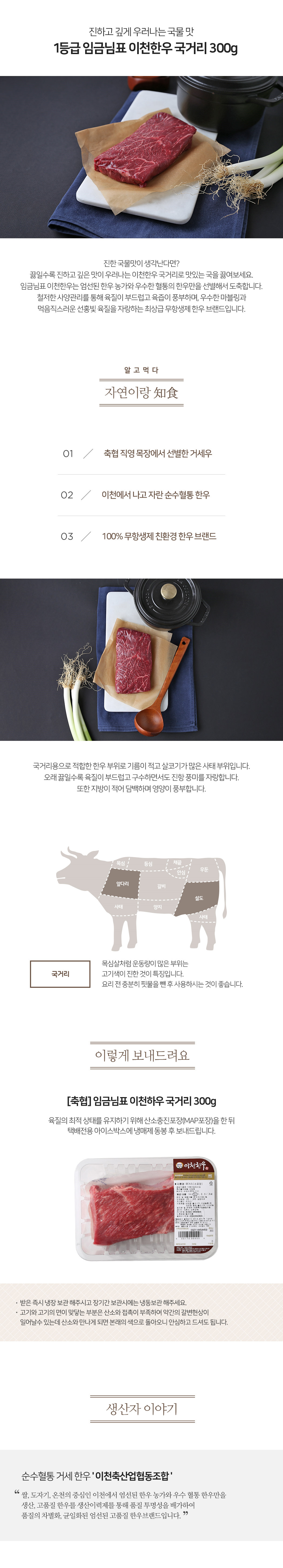 [이천축협] 무항생제 1등급 한우 국거리 300g