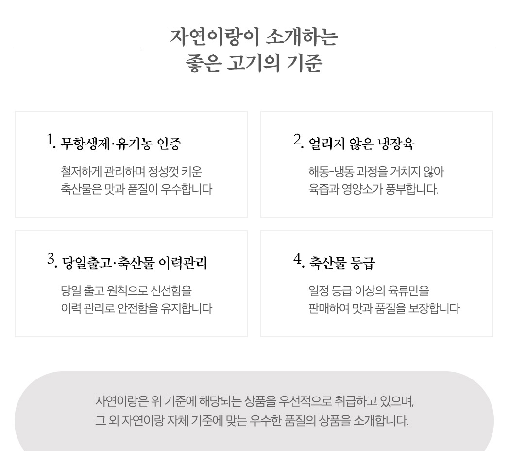 · 주의사항 - 일요일, 법정공휴일은 배송(도착)하지 않습니다. (명절 및 특수시즌 제외) - 배송지 정보와 받으시는 분의 장소 및 연락처가 불분명할 경우에는 배송이 지연될 수 있으며, 그로 인한 상품 변질에 대해서는 자연이랑이 책임지지 않습니다. |