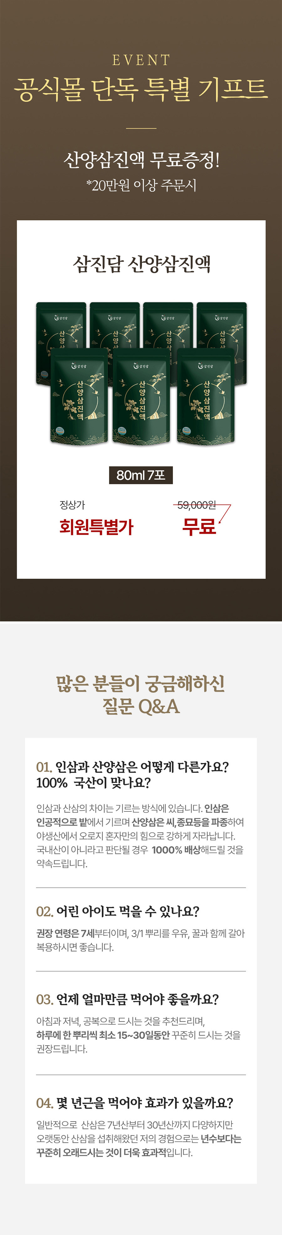정성스레 키운 7년근 산양삼| 판매가격 | 79,000원 99,000원 ~ | |